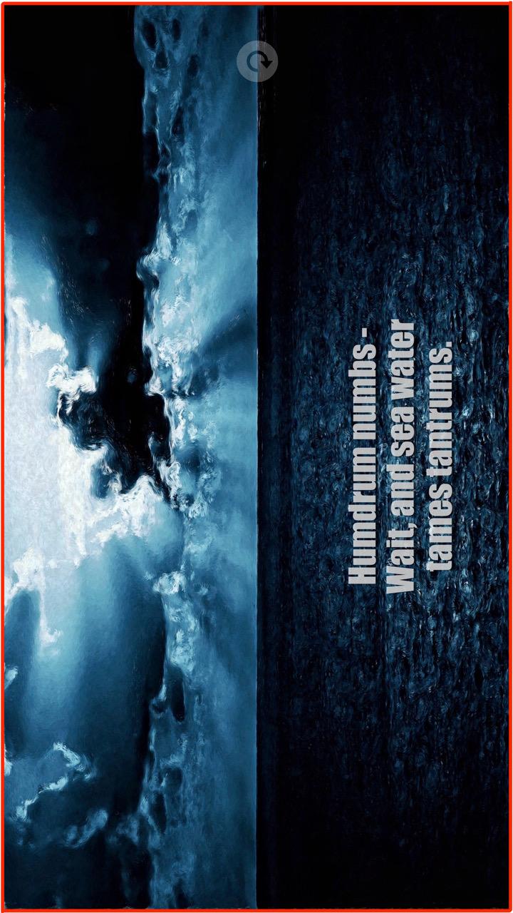 Like creating art for art’s sake, the implicit reward of patience is a sea change in perspective. Impatience can’t wait for all good things that come to those who can. Simple as that. Not to say waiting for all good things is easy. We can’t just count to ten – et voilà! We have to count to eleven, for a gift from the sea.