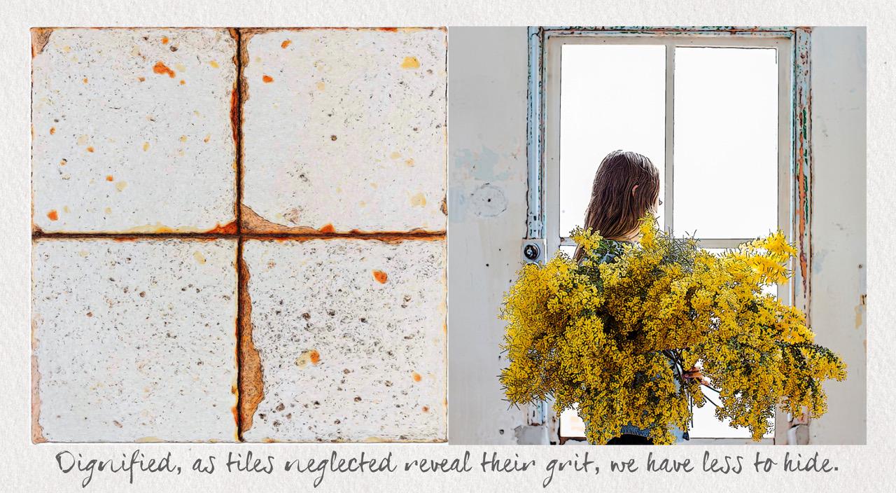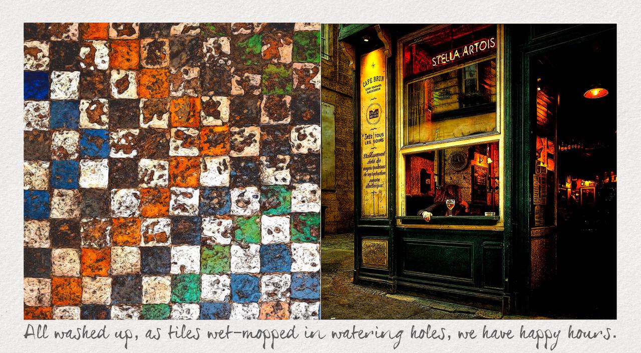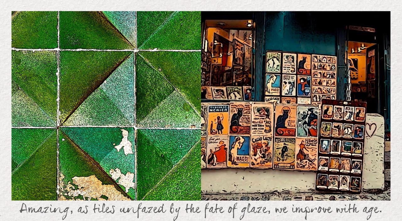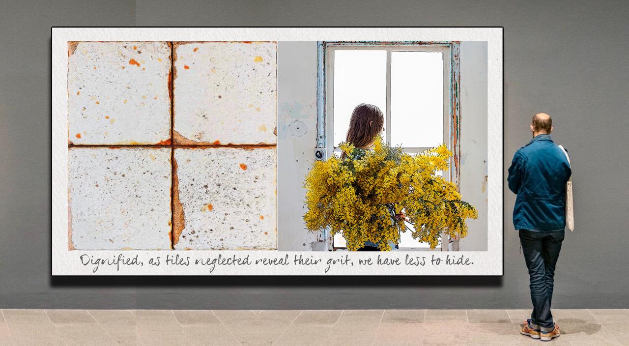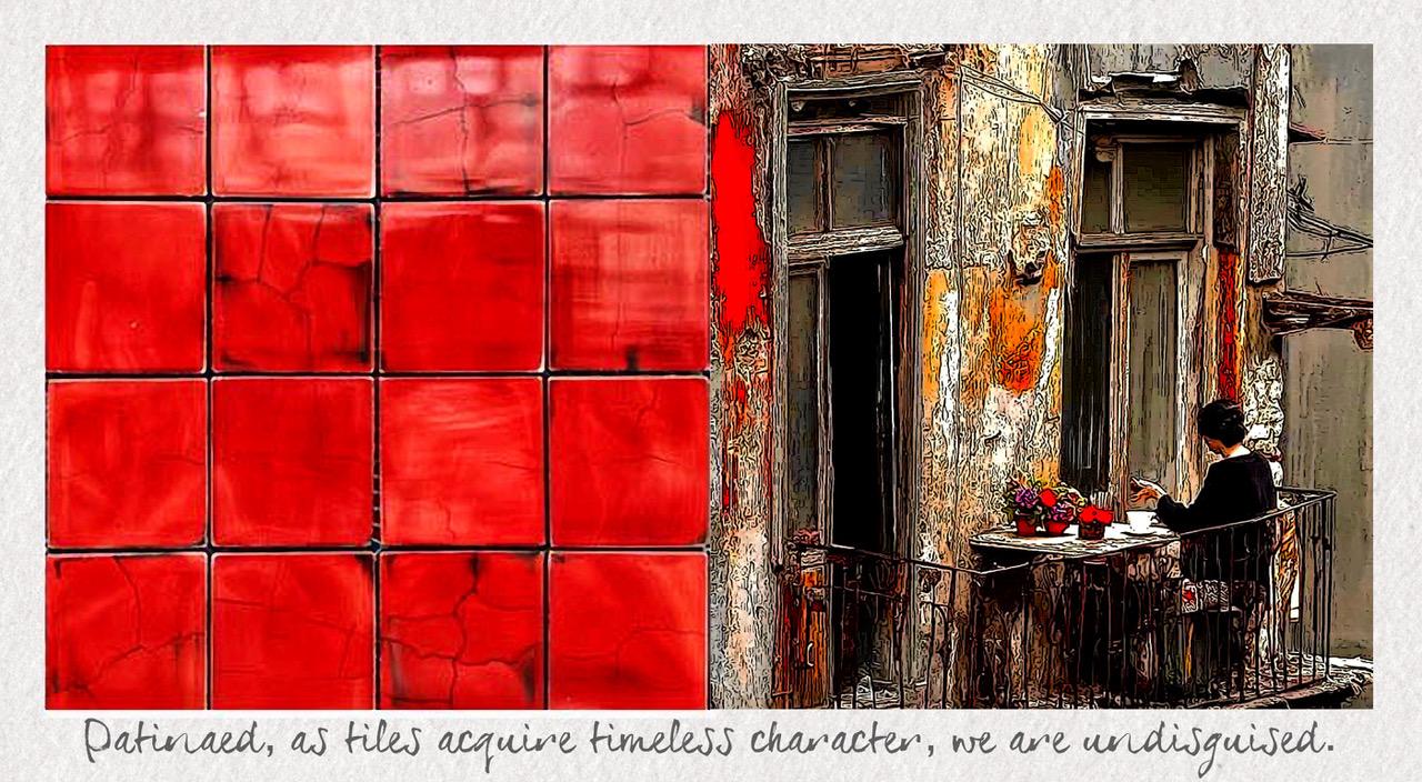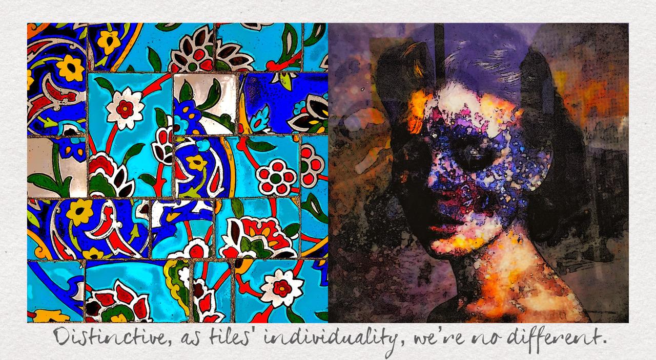 “True Tile Tales” juxtaposes visual and verbal metaphoric similes, through which truth be told about humans in the language of tiles.